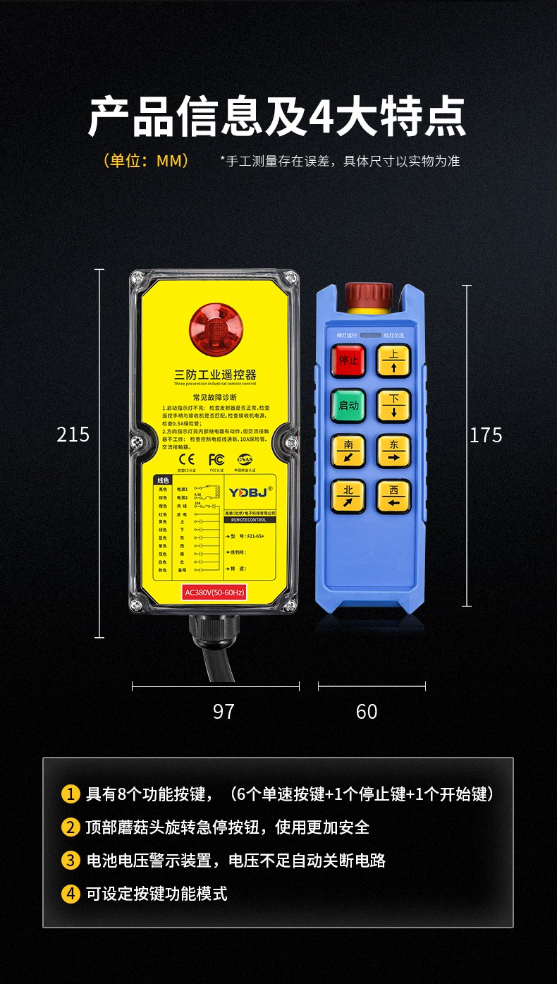 產(chǎn)品廣泛應(yīng)用于機械、建筑、冶金、汽車、化工、鐵路、施工等可實現(xiàn)遙控操作的設(shè)備及場所。