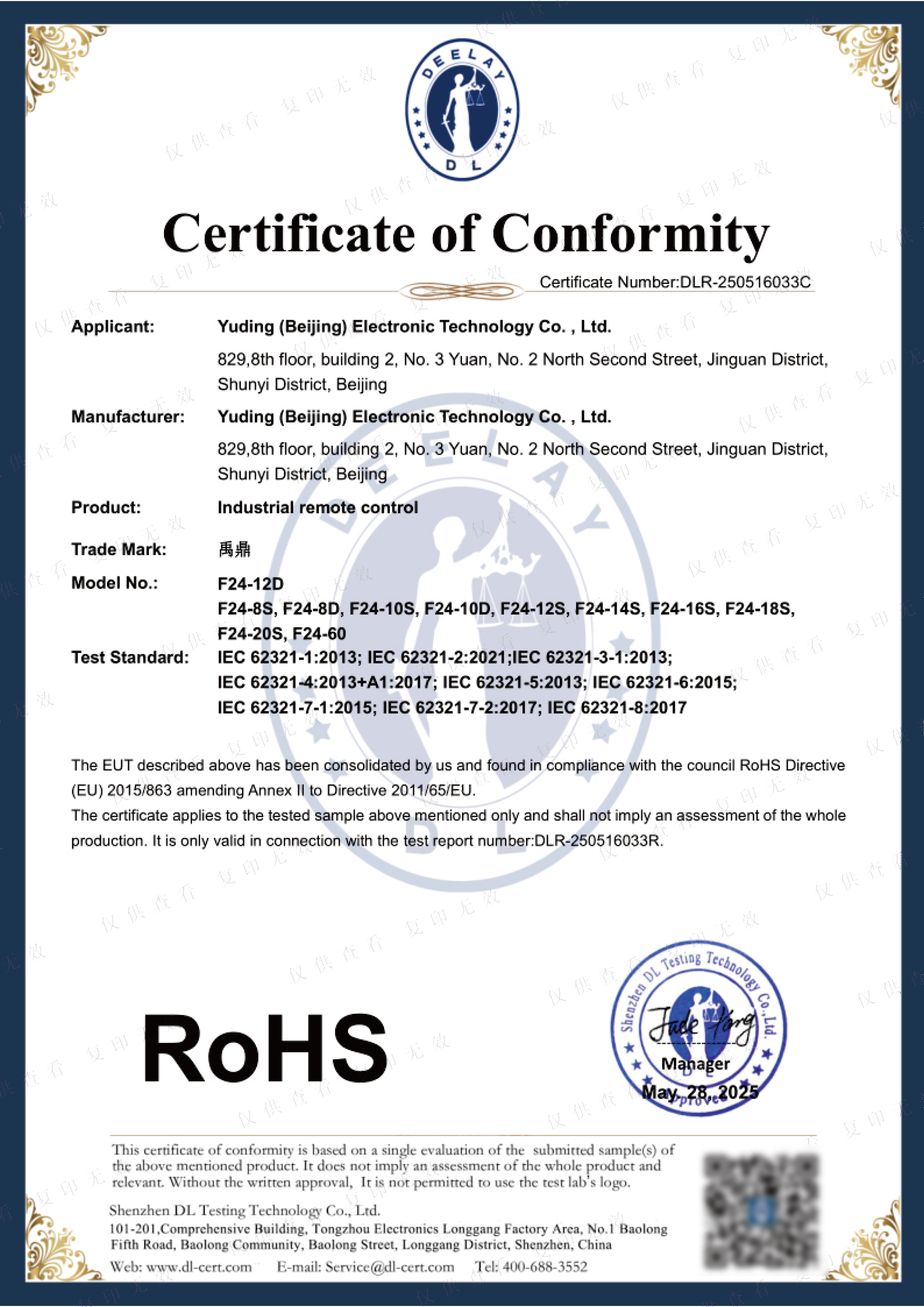 F24系列RoHS認(rèn)證