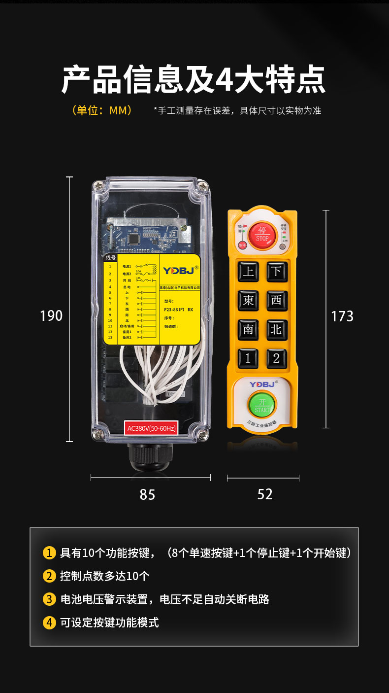 產(chǎn)品廣泛應(yīng)用于機械、建筑、冶金、汽車、化工、鐵路、施工等可實現(xiàn)遙控操作的設(shè)備及場所。